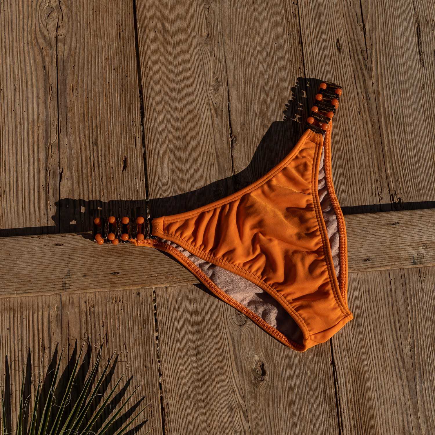 Jeder Bikini hat seine ganz eigene Individualität, welche ihm sein besondere Exklusivität und den edlen Charakter verleiht. Der Schmuckeinsatz bei den Ausführungen Artesanal und Tanga stört beim Tragen nicht, durch die hohe Stoffqualität schneidet er nicht ein. Ein unverwechselbarer Eyecatcher. Die Seitenapplikationen können vom Kunden nicht gewählt werden und variieren, bei der Bestellung wird die individuelle Ausführung wie geliefert akzeptiert.