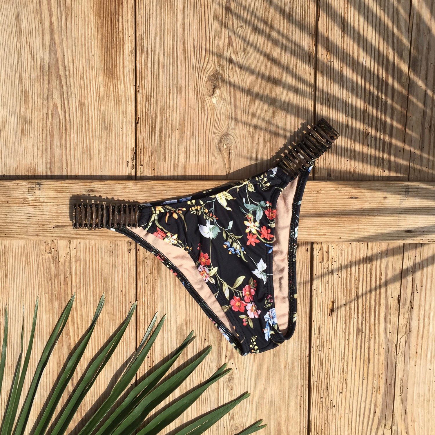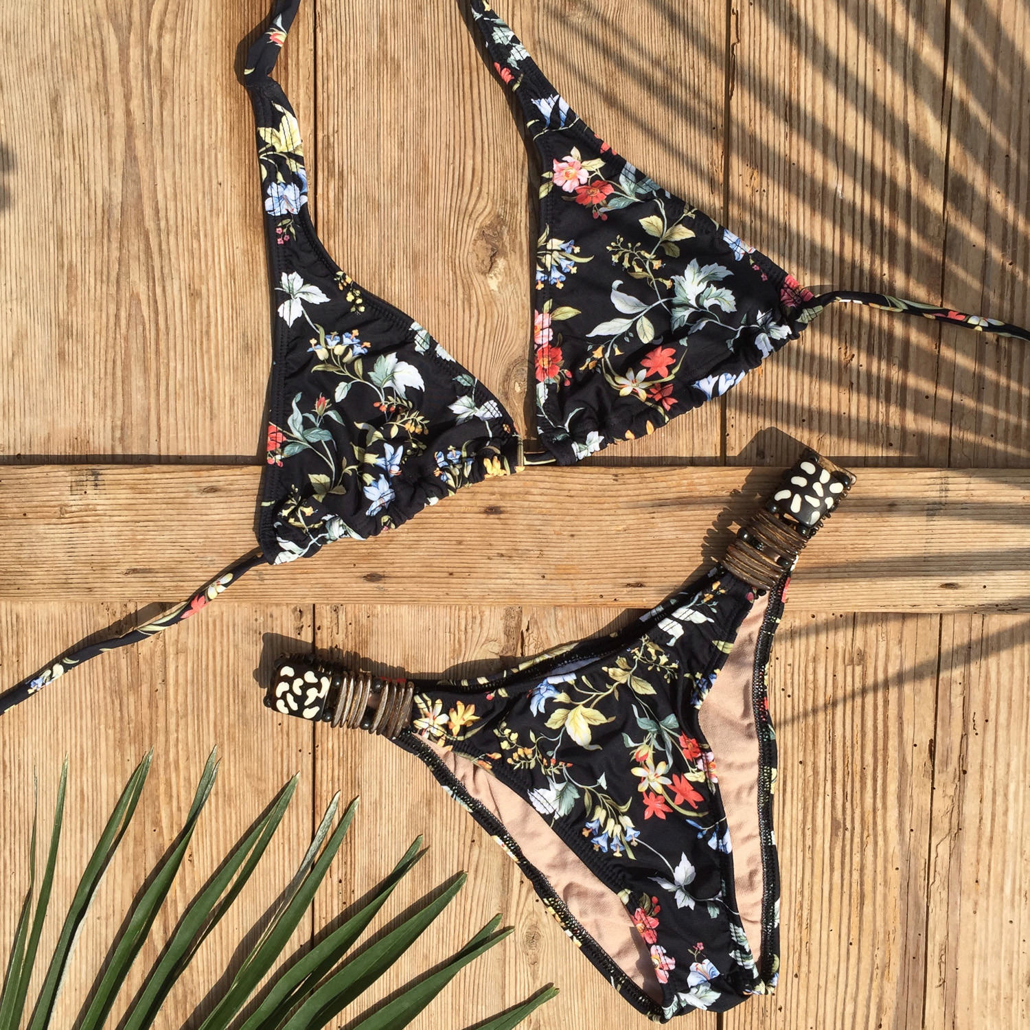 Jeder Bikini hat seine ganz eigene Individualität, welche ihm sein besondere Exklusivität und den edlen Charakter verleiht. Der Schmuckeinsatz bei den Ausführungen Artesanal und Tanga stört beim Tragen nicht, durch die hohe Stoffqualität schneidet er nicht ein. Ein unverwechselbarer Eyecatcher. Die Seitenapplikationen können vom Kunden nicht gewählt werden und variieren, bei der Bestellung wird die individuelle Ausführung wie geliefert akzeptiert.